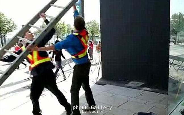 Πρόκειται για μια προκλητική φάρσα, όχι για τέχνη του δρόμου. Η έκπληξη των Γερμανών ήταν μεγάλη και ευλόγως δημιούργησε αναστάτωση στο κεντρικό δρόμο της γερμανικής πόλης. Το «αντίπαλον δέος» εμφανίστηκε σαν αψίδα καλύπτοντας ολόκληρο τον τοίχο της εταιρίας Apple.