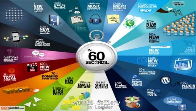 Γίνονται 695,000 status updates, και δημοσιεύονται 79,364 wall posts και 510,040 σχόλια στο Facebook