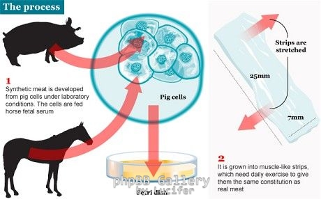 Οι ερευνητές του πανεπιστημίου του Μάαστριχτ, με επικεφαλής τον καθηγητή Μαρκ Ποστ, χρησιμοποιούν χιλιάδες βλαστικά κύτταρα ζώων για να δημιουργήσουν ολόκληρα κομμάτια τεχνητού (εργαστηριακού) κρέατος, που θα μπορούσε και ονομαστεί "κρέας του σωλήνα", κατ' αναλογία με τα "παιδιά του σωλήνα". Τα βλαστοκύτταρα των ζωικών κυττάρων πολλαπλασιάζονται σε ελεγχόμενες συνθήκες στο εργαστήριο και παράγουν τμήματα μυϊκού ιστού, τον οποίο μετά μπορεί να μεταχειριστεί κανείς σαν κομμάτι κρέατος που προέρχεται από κανονικό ζώο.