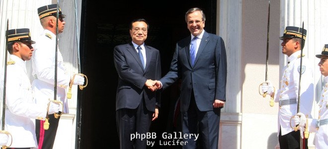 Αντώνης Σαμαράς και Λι Κετσιάνγκ εμφανίστηκαν χαμογελαστοί κατά τη συνάντησή τους και υπογράμμισαν τις καλές σχέσεις που έχουν οι δύο χώρες και την κοινή θέληση για να βελτιωθούν αυτές περαιτέρω.