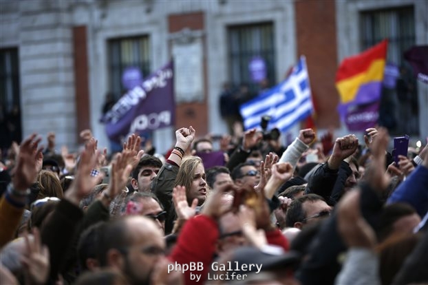 Αρκετές δεκάδες χιλιάδες βγήκαν στους δρόμους της ισπανικής πρωτεύουσας για την «Πορεία Αλλαγής» του Podemos με αφετηρία την εμβληματική Πουέρτα δελ Σολ. Αρκετές και οι ελληνικές σημαίες, με συνθήματα «Μπορεί να γίνει» (Si, se puede) και «Tic Tac» (ο ήχος του ρολογιού που χτυπά αντίστροφα για την κυβέρνηση Ραχόι).