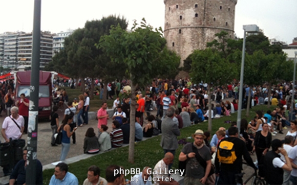Κατά χιλιάδες συρρέουν στον Λευκό Πύργο της Θεσσαλονίκης oι «Aγανακτισμένοι» και μέχρι αυτή την ώρα τουλάχιστον 5.000 άτομα έχουν δώσει το «παρών».