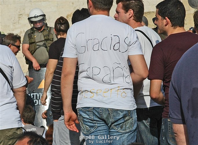Κοινή πεποίθηση η συγκέντρωση να είναι ειρηνική. Μοναδική εικόνα η απουσία κομματικών πανό. Κοινό σύνθημα δύο λέξεις «Κλέφτες ..Κλέφτες». Γενική ομολογία… πώς αυτή η κατάσταση δεν μπορεί να συνεχιστεί . «Θέλω να κάνω τα δικά μου όνειρα», έλεγε η Εύα, 22 ετών, φοιτήτρια. «Δεν μου αρέσει αλλά πρόκειται να εγκατασταθώ στην Κίνα γιατί εκεί υπάρχει δουλειά», σημείωνε ο Αντρέας.