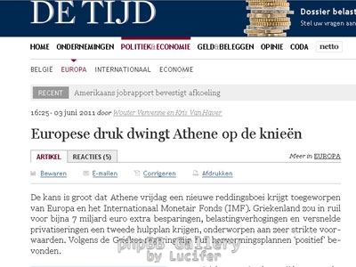 Επίθεση στη στρατηγική της Ε.Ε. απέναντι στην ελληνική κρίση εξαπολύει, μέσα από κύριο άρθρο της η βελγική εφημερίδα «De Tijd».