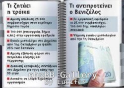 Αφόρητες πιέσεις για άμεσες απολύσεις 25.000 δημοσίων υπαλλήλων και ένταξη στην εφεδρεία άλλων 100.000 ζήτησε η τρόικα από τον υπουργό Οικονομικών Ευάγγελο Βενιζέλο, γιατί διαφορετικά η συμφωνία της 21ης Ιουλίου, αν δεν γίνουν τα παραπάνω, δεν θα υλοποιηθεί. «Τα μέτρα που μας ζητάτε υπερβαίνουν τους όρους εντολής αυτής της κυβέρνησης» φέρεται να απάντησε ο υπουργός Οικονομικών.