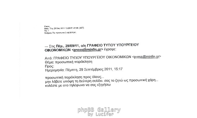 Στους ηλεκτρονικούς λογαριασμούς ελληνικών όσο και ξένων μέσων ενημέρωσης έφτασε το εξής conferance call από το ΥΠΟΙΚ: