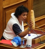 Η Λιάνα Κανέλλη του ΚΚΕ πήγε στη Βουλή μια φραντζόλα ψωμί και ένα μπουκάλι γάλα και ο Άδωνις Γεωργιάδης του ΛΑΟΣ της απάντησε μιλώντας για βουλευτή από την Εκάλη.