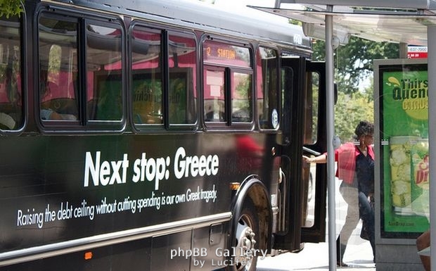 Στην πρωτεύουσα της Αμερικής κυκλοφορούν λεωφορεία με αφίσες που αναγράφουν τα παραπάνω. Μάλιστα σχολιάζουν την Ελλάδα και σε αφίσες που είναι κολλημένες σε στάσεις λεωφορείων.
