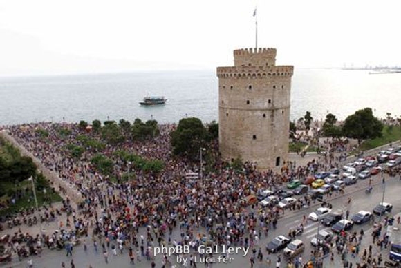 Κατά χιλιάδες συρρέουν στον Λευκό Πύργο της Θεσσαλονίκης oι «Aγανακτισμένοι» και μέχρι αυτή την ώρα τουλάχιστον 5.000 άτομα έχουν δώσει το «παρών».