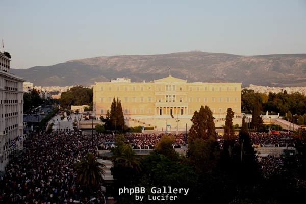 Από νωρίς το απόγευμα δεκάδες χιλιάδες πολίτες ξεχύθηκαν στους δρόμους της Αθήνας κάνοντας την πλατεία Συντάγματος να μοιάζει με μια απέραντη λαοθάλασσα. Όλοι διαδήλωσαν ειρηνικά χωρίς να σημειωθεί το παραμικρό. Κανείς δεν έχασε τον έλεγχο, ενώ όλοι αποδοκίμασαν την κυβέρνηση και το πολιτικό σύστημα, με κυρίαρχο σύνθημα το «πουλάτε, πουλάτε. Ξύλο που θα φάτε», νιώθοντας απέχθεια.