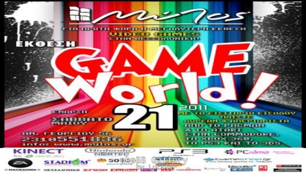 Όποιος θέλει να ζήσει από κοντά τον μοναδικό κόσμο και την ιστορία της ηλεκτρονικής ψυχαγωγίας και να μυηθεί στις νέες τεχνολογίες των games, σε περισσότερα από 1000 παιχνίδια, μπορεί να επισκεφτεί την έκθεση «GAME WORLD 2011», μέχρι τις 30 Ιουνίου από Δευτέρα έως Παρασκευή: 17:00 έως στις 23:00 και Σαββατοκύριακο 11:00πμ έως τις 23:00