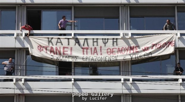 Υπό κατάληψη βρίσκεται και το ΙΚΑ επί της οδού Ιπποκράτους στο κέντρο τη Αθήνας. Αντίστοιχες κινητοποιήσεις αναμένονται και σε άλλους εργασιακούς χώρους - υπηρεσίες του Δημοσίου.