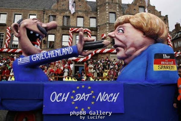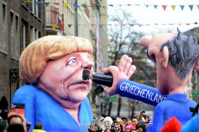 Άρμα με τη Merkel κι έναν Έλληνα, σε καρναβάλι στη Γερμανία!